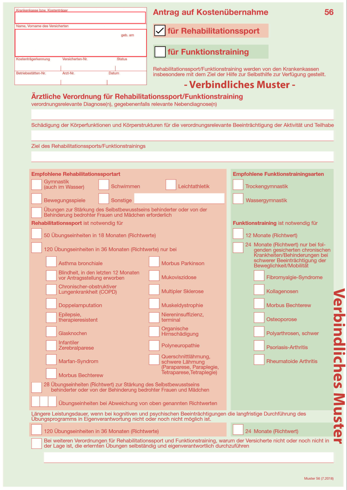 Mit dem Formular56 können Sie an der Gymnastik (auch im Wasser), Schwimmen, Bewegungsspiele kostenlos an den Kursen teilnehmen.